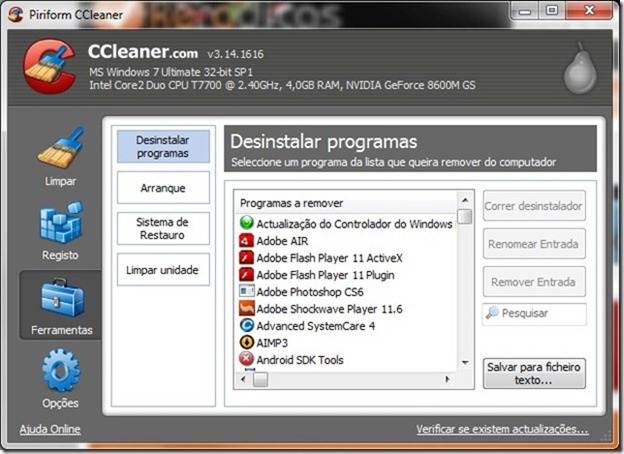 Como o próprio nome diz, serve para você desinstalar programas do computador. Veja o que cada botão executa:
